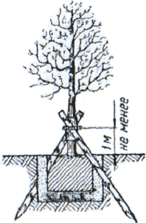 Схема посадки крупномерного плодового растения с комом земли: