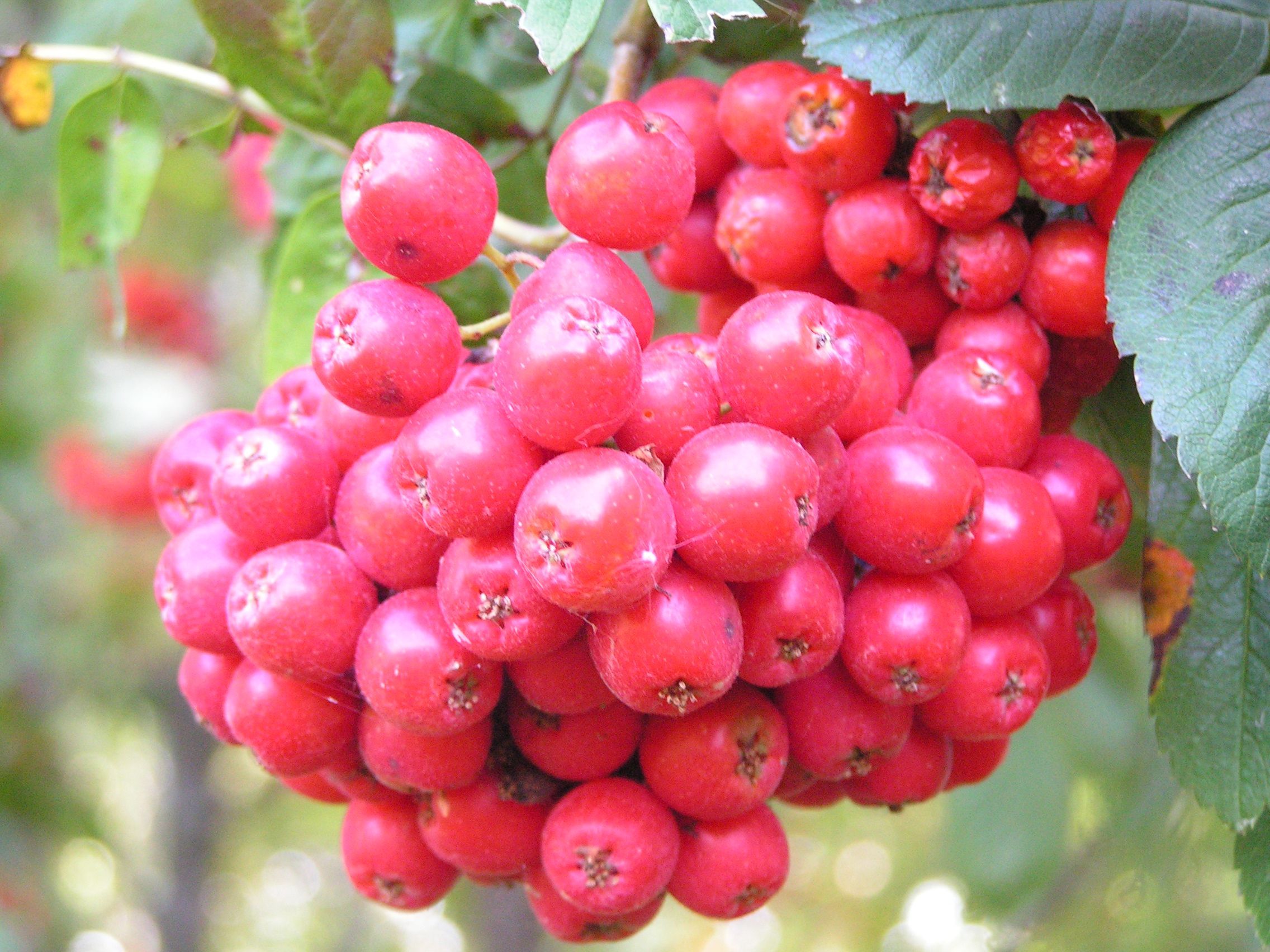 Плоды очень крупные, массой 2.3–2.5 г., до 4г, похожи на вишню, красные, собраны в очень крупные щитки.