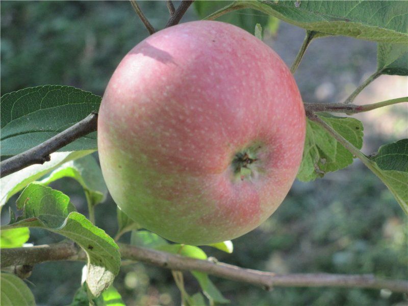 Плоды вышесредней величины, одномерные, уплощенно-округлые, правильной формы, иногда слегка скошены. Поверхность гладкая, основная окраска при съеме – зеленая, покровная – размытая, буровато-темно-красная с сизым налетом по большей части плода. В потребительской зрелости основная окраска светло-зеленая, покровная – красная, размытая, подкожных точек много, крупные, светло-зеленые, хорошо заметные.