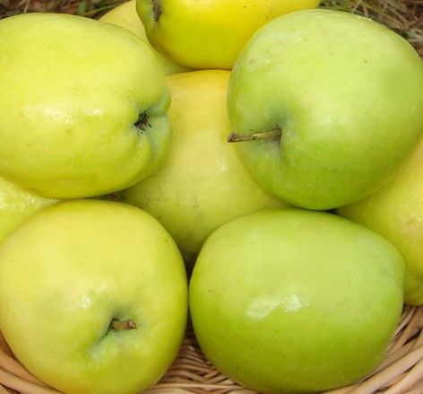 Плоды средней величины (средний вес 120 г), округло-конической формы или стаканчатые. Кожица гладкая, при хранении становится маслянистой. Основная окраска желтовато-зеленая, покровная – в виде буровато-красного румянца на освещенной стороне плода. Подкожные точки светлые, многочисленные, крупные – хорошо заметные.