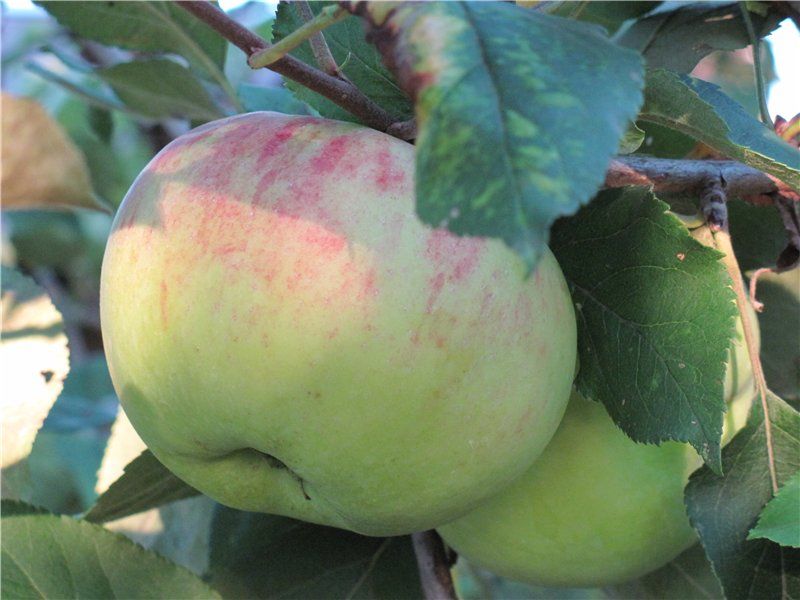 Плоды крупные, плоскоокруглые, слаборебристые, светло-зеленые, с размытыми красными полосами по меньшей части плода.