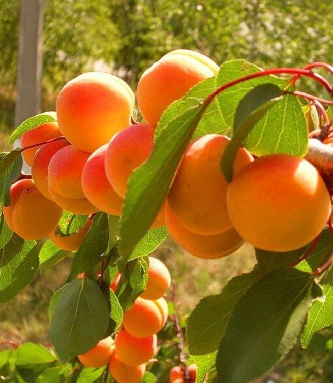 B отдельные годы средняя масса плода составляет 30-40 г, у некоторых более 50 г. Плоды овальные, немного неровные, сжатые с боков, кожица опушенная, грубоватая, лимонно-желтая с ярким румянцем. Мякоть оранжевая, сочная, средней плотности, немного мучнистая, дегустационная оценка 3,5 балла. Химический состав: сухих веществ 16,9%, сахаров 8,1%, титруемых кислот 2,0, содержание калия 420 мг/100г. Косточка довольно большая (12,0%), плоская, отделяется чуть-чуть нечисто.